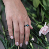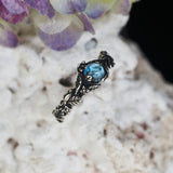 This Blue Topaz Leaf Ring in oxidized 925 sterling silver celebrates both nature and devotion. The design features delicate leaves that wrap gracefully around a genuine blue topaz gemstone – the November birthstone, known for clarity, truth, and emotional balance.