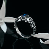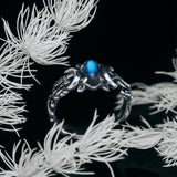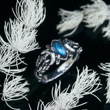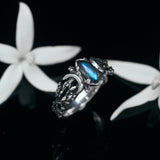 A natural Labradorite gemstone sits at the center, symbolizing the full moon and its mystical energy. Known for enhancing intuition and spiritual protection, Labradorite makes this ring a meaningful choice for those drawn to lunar magic.