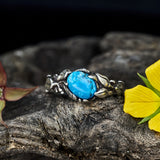 Dakota - Natural Turquoise Floral Ring in Sterling Silver