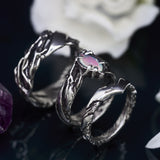 🌿 The matching women’s wedding band has no gemstone, allowing the sculpted twig texture to shine. Worn with the opal ring or on its own, it reflects strength and natural elegance.