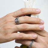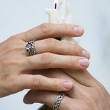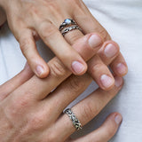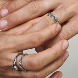 The Louise ring set captures the quiet poetry of the forest with its delicate combination of leaves, vines, and natural textures. Crafted from solid 925 sterling silver and finished with oxidized detail, this three-ring set celebrates unity, beauty, and timeless connection.