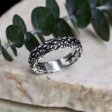 Wear this blackened silver ring featuring a beautiful ivy leaf if you are one of us - truly nature lovers! It also makes a great gift for someone in your life who really loves plants and gardening. "Ivy" botanical ring is an especially thoughtful gift for mums: for her birthday on Mother's day. This boho ring was created in a fresh way for Blacktree - in 3D - without waxing method, but using our exclusive design. It only adds to the ring's finest and neatness, but not losing our signature natural charm. This hippie ring is a great idea for an engagement or wedding ring!