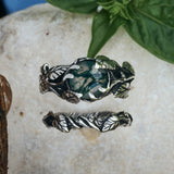 Sierra Moss Agate Engagement Ring Set - Sterling Silver Botanical Jewelry