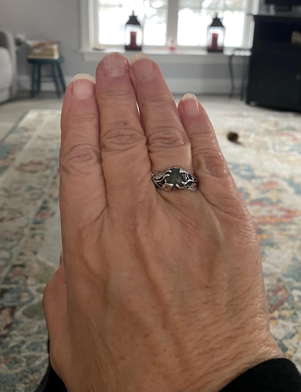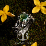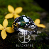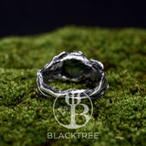 Meet “Sierra” - a vintage-inspired rose cut ring made in signature Blacktree style. A gorgeous moss agate gemstone is the center of this statement ring, which is surrounded by lianes, vines and leaves made of sterling silver. This engagement ring will definitely impress your special someone! The "Sierra" nature ring is perfect for saying those three little words.