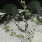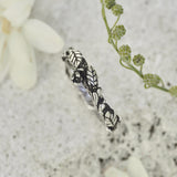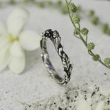 Save the most prominent life moments by wearing the "Mona" wedding band. Destined to go hand in hand with your love, this 925 Sterling Silver wedding band is handmade with attention to details featuring exclusively designed leaves and blossoms along the ring.